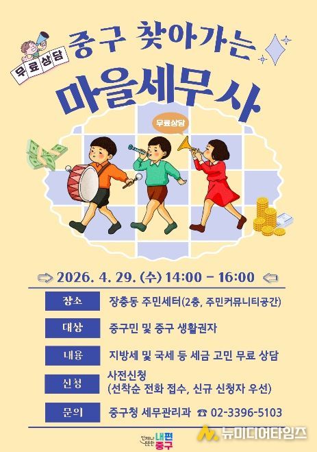 서울 중구는 구민들이 일상에서 겪는 세금 고민을 보다 쉽고 편하게 해결할 수 있도록 오는 29일 오후 2시 장충동 주민센터 2층에서 '찾아가는 마을세무사'를 운영한다.