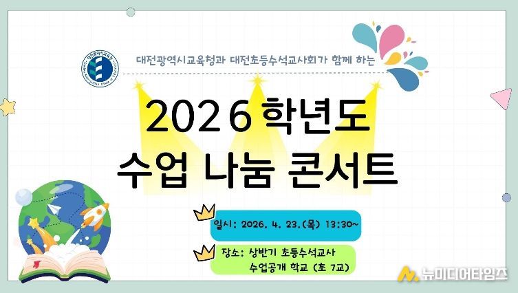 대전시교육청은 2026학년도 초등 수석교사와 함께하는 상반기 수업 나눔 콘서트를 4월 23일 운영한다고 밝혔다.