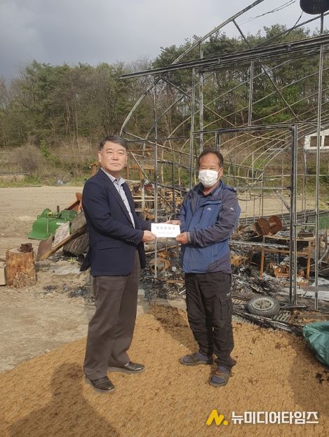 이번 지원 대상은 지난 4월 9일 농지에 발생한 화재로 인해 큰 피해를 입은 남면 유치1리 주민이다. 당시 화재로 창고용 비닐하우스와 트랙터 등이 모두 전소되는 피해가 발생했다. 다행히 인명 피해는 없었지만, 본격적인 영농철을 앞두고 막대한 재산 피해를 입어 생계 유지와 농업 활동에 어려움을 겪고 있는 실정이다.