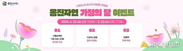 옹진군은 5월 가정의 달을 맞아 지역 특산물 온라인 판로 확대와 옹진자연몰 이용 활성화를 위해 ‘2026년 옹진자연 가정의 달 맞이 이벤트’를 오는 4월 22일부터 5월 20일까지 총 29일간 운영한다고 밝혔다.
