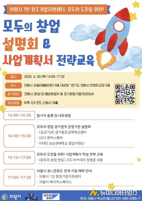 의왕시 1인 창조기업지원센터는 4월 30일, 창업을 희망하는 예비 및 초기 창업자를 대상으로 ‘모두의 창업’ 설명회 및 전략 교육을 개최한다.