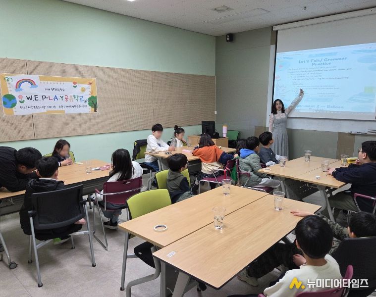 이번 프로그램은 지역 초등학교 3~4학년 학생 16명이 참여한 가운데, 지난 3월 14일부터 4월 18일까지 매주 토요일 총 6회에 걸쳐 지산초록도서관 지하 강의실에서 진행됐다. 학생들은 원어민과 함께하는 한국 전통 놀이, 음식 만들기 및 이국적인 음식 체험, 과학 실험 등 다양한 놀이와 체험을 통해 자연스럽게 영어를 접하며 다른 문화를 이해하고 언어와 비언어적 요소를 경험하는 시간을 가졌다.
