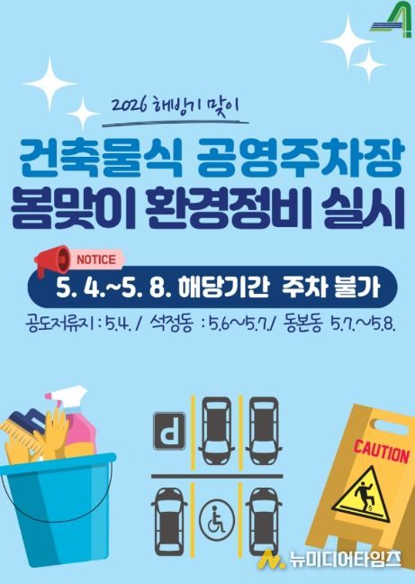 세부 정비 일정은 ▲공도저류지 공영주차장(5월 4일) ▲석정동 공영주차장(5월 6일~7일) ▲동본동 공영주차장(5월 7일~8일) 순으로 진행된다. 공단은 청소 및 시설 보수 시간 중 발생할 수 있는 안전사고를 예방하기 위해 해당 기간 주차장 이용을 일시적으로 제한한다.