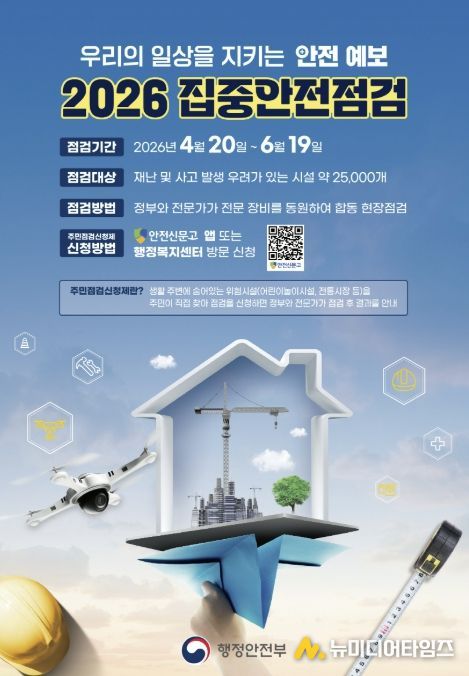 구리시는 시민 안전 확보를 위해 4월 20일부터 6월 19일까지 두 달간 ‘2026년 집중 안전 점검’을 본격 추진한다고 밝혔다.