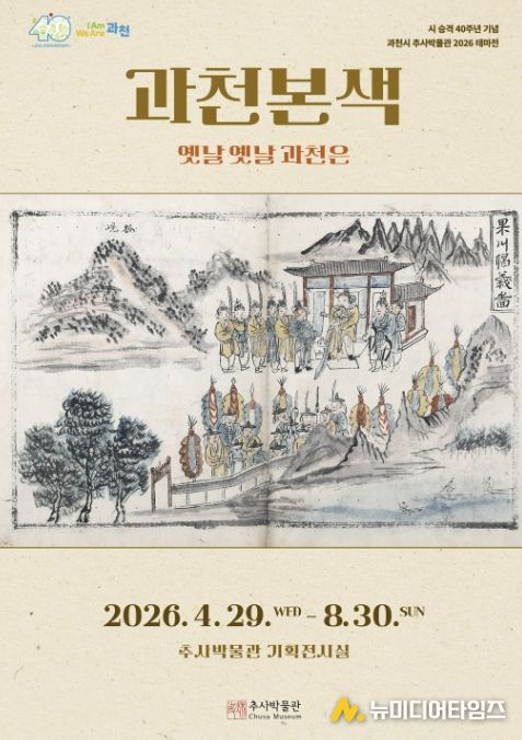 과천시 추사박물관은 시 승격 40주년을 기념하여 ‘2026 테마전 '과천본색–옛날 옛날 과천은'’을 개최한다고 밝혔다. 이번 전시는 4월 29일 오후 3시 개막식을 시작으로 8월 30일까지 추사박물관 기획전시실에서 진행된다.