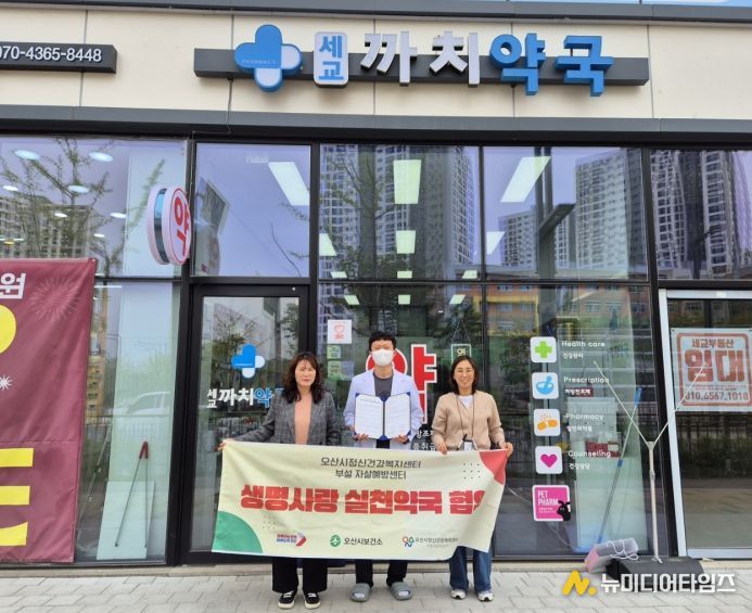 오산시정신건강복지센터 부설 자살예방센터는 지역사회 기반 생명존중 문화 확산과 자살예방 체계 강화를 위해 지난 20일과 21일 이틀간 관내 약국 4곳과 ‘생명사랑약국’ 업무협약을 체결했다고 밝혔다.