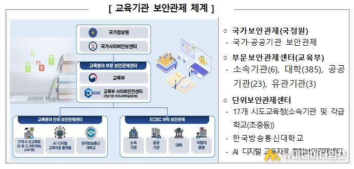 2027년부터는 ‘교육부 사이버안전센터(ECSC)’에서 운영 중인 ‘인공지능(AI) 사이버 보안관제 시스템’을 시도교육청 보안관제에도 적용하여, 교육기관에 대한 사이버침해 시도에 대해 공동의 데이터 수집·분석·대응할 수 있도록 추진할 계획이다.