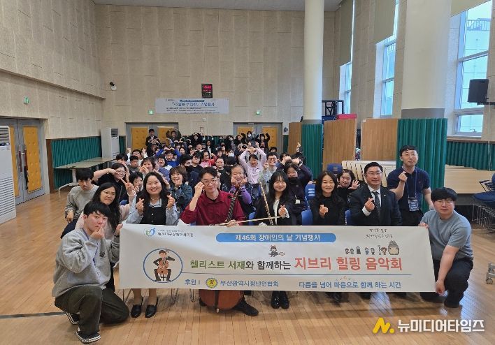장애인의 날을 기념해 14일 해운대구 장애인복지관에서 ‘지브리 힐링 음악회’를 열었다. ‘다름을 넘어 마음으로 함께하는 시간’을 주제로 첼리스트 서재, 조수임 재즈트리오가 음악으로 위로와 공감을 전했다. 이웃집 토토로, 하울의 움직이는 성 등 친숙한 지브리 영화 음악을 연주해 장애인과 아동들에게 감동을 선사했다.