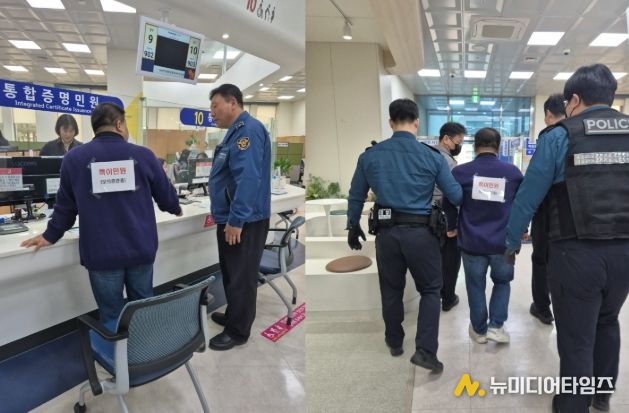 훈련은 폭행 상황을 가정해 ▲비상벨 작동 ▲방문객 대피 ▲피해 공무원 보호 ▲경찰 출동 및 퇴거 등 단계별 매뉴얼에 맞춰 실전처럼 진행됐다.