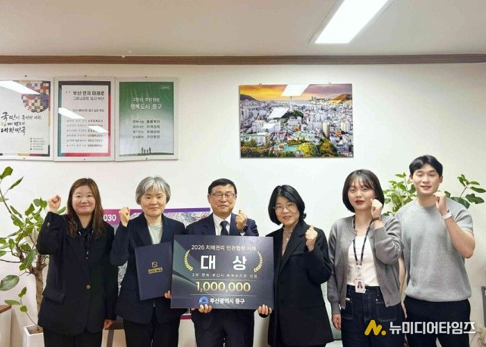 부산 중구는 2026년 치매관리 민관협력 우수사례 공모전에서‘소지역 맞춤형 기억동행, 중구형 치매보듬마을’사례로 대상을 수상했다고 밝혔다.