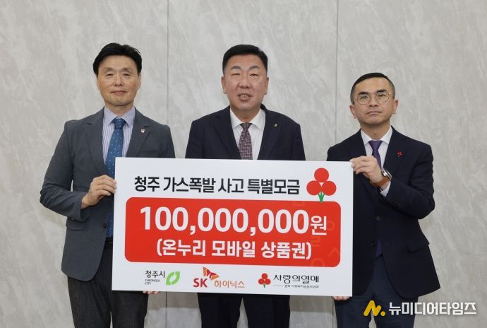 청주시는 SK하이닉스㈜(대표 곽노정)가 22일 청주 가스폭발 사고 피해지원을 위해 충북사회복지공동모금회를 통해 1억원(디지털 온누리상품권)을 기탁했다고 밝혔다.