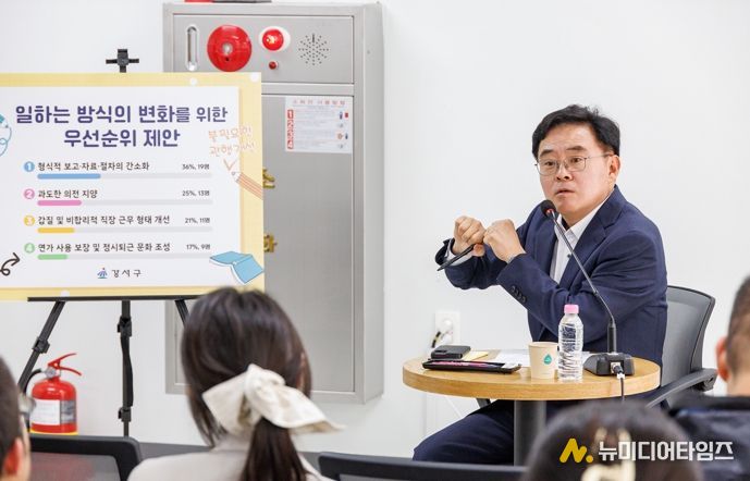 진교훈 강서구청장이 22일 수요일 주요 계약‧인허가 등 부패 취약분야 부서 직원들과 청렴 소통 간담회를 가졌다.