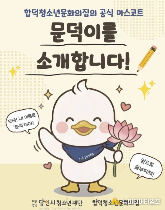 (재)당진시청소년재단 합덕청소년문화의집 청소년운영위원회 T.B.T는 지난 3월 16일부터 4월 18일까지 진행한 마스코트 네이밍 공모전을 통해 합덕청소년문화의집의 마스코트 이름을 ‘문덕’이로 최종 선정했다고 밝혔다.
