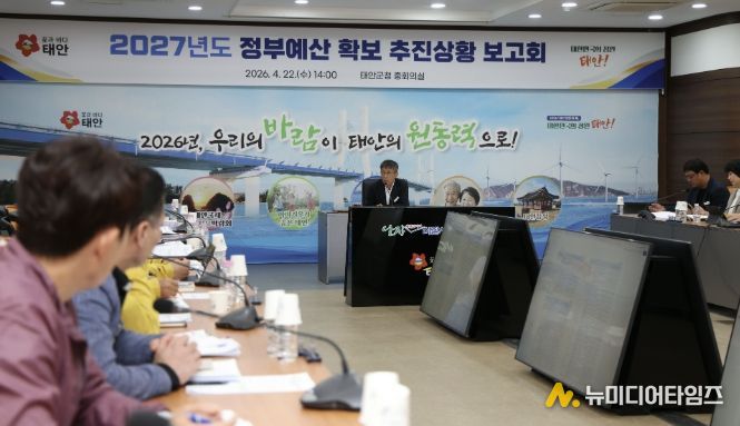 태안군이 22일 군청 중회의실에서 이주영 부군수와 각 부서장 등 30여 명이 참석한 가운데 ‘2027년도 정부예산 확보 추진 상황 보고회’를 열고 부처 예산안 반영 현황을 점검하며 세부 대응 전략 논의에 나섰다.