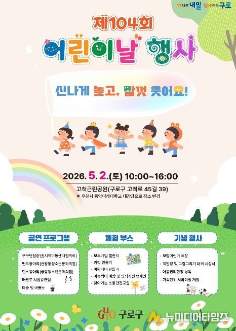 구로구가 제104회 어린이날을 맞아 오는 5월 2일 고척근린공원에서 어린이와 가족, 지역주민이 함께 즐길 수 있는 ‘어린이날 행사’를 개최한다.