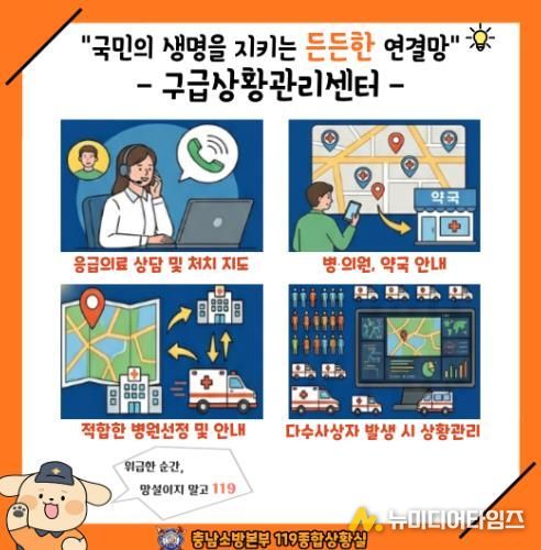 최길재 소방서장은 “응급상황에서는 빠른 판단과 적절한 대응이 무엇보다 중요하다”며“언제 어디서나 이용 가능한 119구급상황관리센터 응급의료상담 서비스를 시민들이 잘 알고 적극 활용해 주시길 바란다”고 전했다.