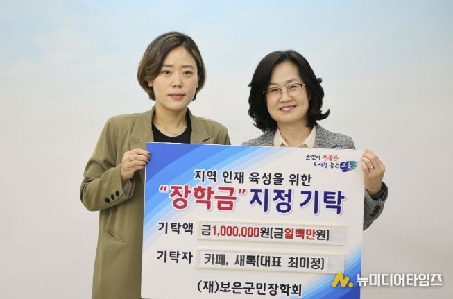 충북 보은군은 23일 ‘카페, 새록’ 최미정 대표가 지역 인재육성을 위한 장학금 100만 원을 보은군민장학회에 기탁했다고 밝혔다.
