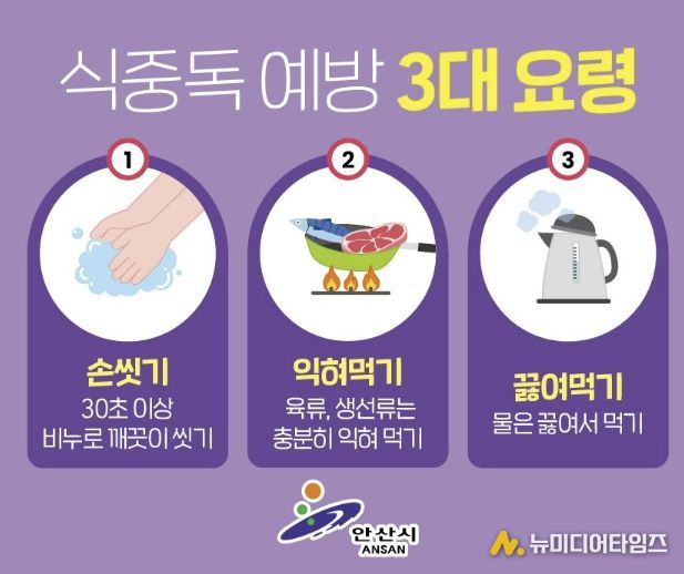 이민근 안산시장은 “식중독은 기본적인 위생수칙 준수만으로도 충분히 예방할 수 있다”며 “손 씻기, 익혀 먹기, 끓여 먹기 등 개인위생 수칙을 생활화해 주시길 바란다”고 말했다.
