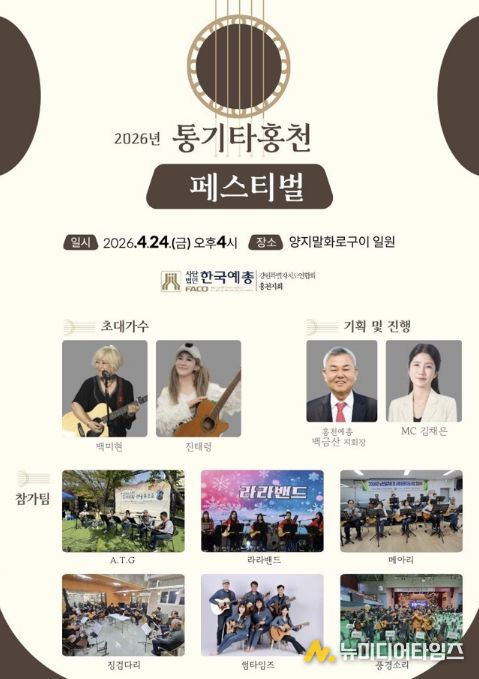 (사)한국예총 홍천지회가 주관하는 2026 통기타 홍천 페스티벌이 오는 4월 24일 오후 4시 홍천 양지말화로구이 일원에서 열린다.