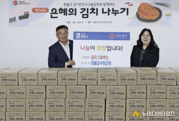 수원시 팔달구은 원불교 수원교당으로부터 지난 22일, 김치 100박스를 기부받았다고 밝혔다.