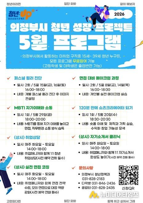 의정부시는 미취업 청년의 취업 준비 역량 강화를 위해 ‘청년성장프로젝트’ 5월 프로그램을 운영한다.