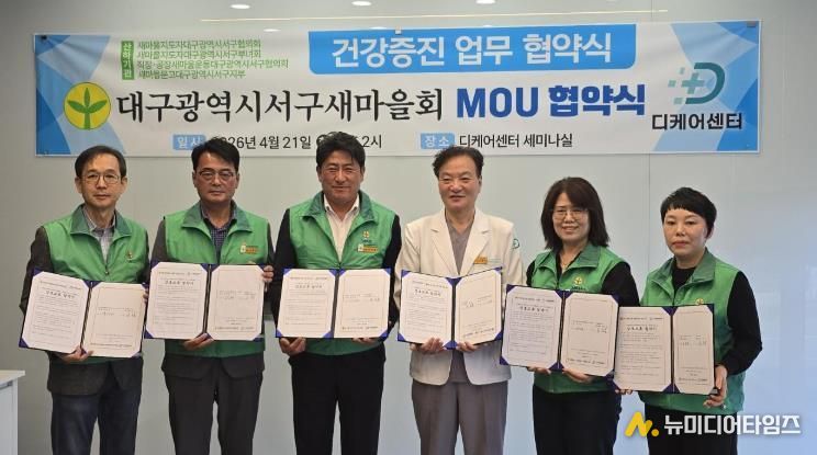 대구광역시서구새마을회는 지난 4월 21일 오후 2시, 디케어센터 세미나실에서 디케어센터와 서구새마을회지도자 및 가족의 건강증진과 복지 향상을 위한 상호협력 업무협약(MOU)을 체결했다.