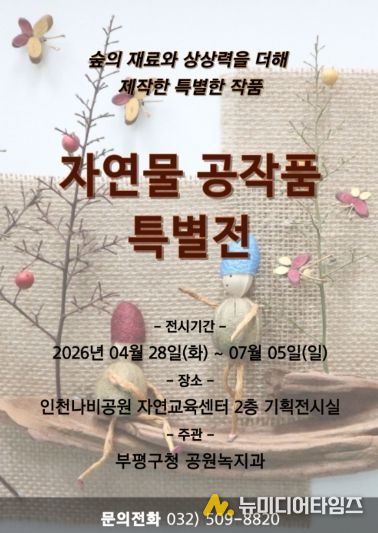 부평구는 부평숲 인천나비공원에서 오는 28일부터 ‘자연물 공작품 특별전’을 개최한다고 밝혔다.