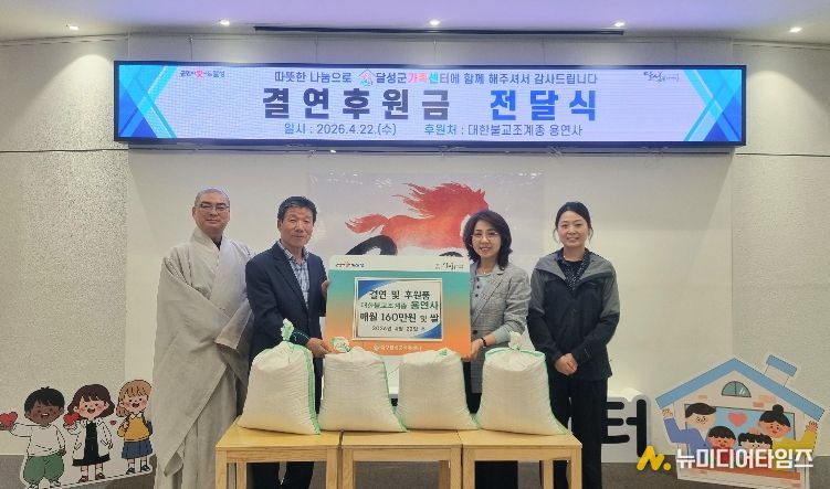 달성군가족센터(센터장 방승희)는 지난 22일 센터 내에서 대한불교조계종 용연사(주지 능도 스님)와 함께 ‘취약·위기 다문화가정 결연금 전달식’을 가졌다고 밝혔다. 이번 사업은 경제적 고통과 위기 상황에 놓인 관내 저소득 다문화 8가구를 돕기 위해 기획됐다.
