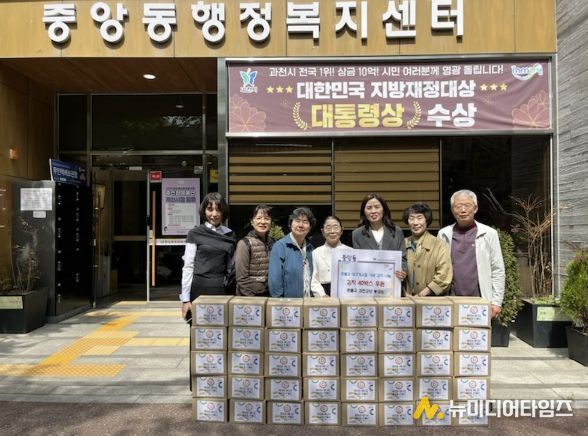 과천시 중앙동은 지난 22일 원불교 과천교당으로부터 어려운 이웃을 위한 5kg 김치 40박스를 기부받았다고 밝혔다.