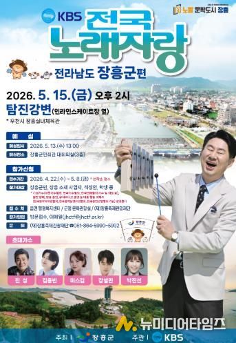 장흥군 관계자는 “이번 전국노래자랑은 군민이 함께 참여하고 즐기는 화합의 장이 될 것”이라며 “방송을 통해 장흥의 매력과 물축제를 전국에 알리는 계기가 되길 기대한다”고 말했다.