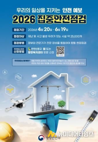 고성군은 지역 내 각종 안전사고 예방을 위해 지난 4월 20일부터 오는 6월 19일까지 ‘2026년 집중안전점검’을 실시하고 있다.