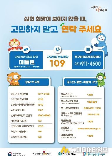 동구보건소는 봄철 자살 고위험 시기(3월~5월)를 맞아 생명존중 문화 확산과 자살예방을 위한 집중 관리 및 홍보를 추진한다고 밝혔다.