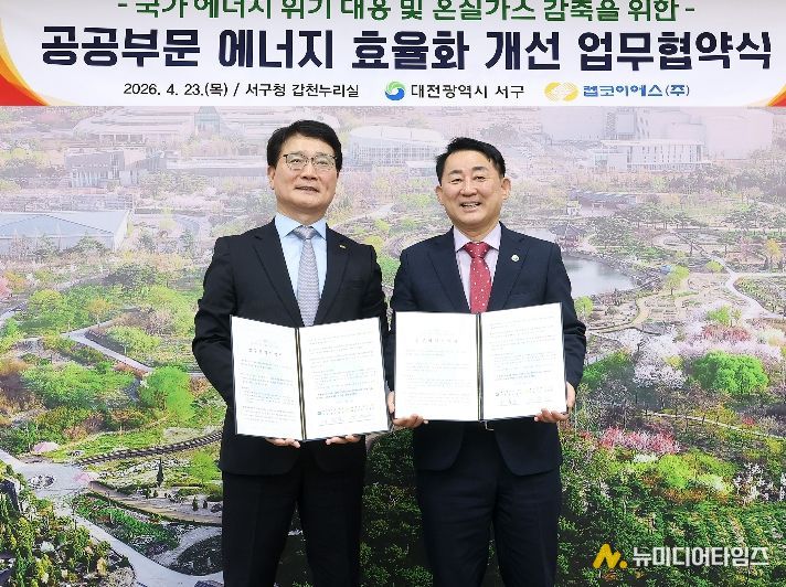 대전 서구는 23일 구청 갑천누리실에서 켑코이에스(주)와 ‘공공부문 에너지 효율화 개선 업무협약’을 체결했다.