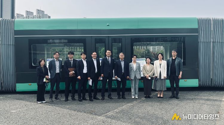대전시는 23일 제33차 행복도시 광역계획권교통협의회 위원들에게 신교통수단 3칸 굴절차량을 소개했다.