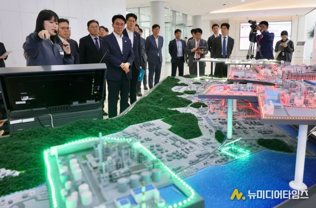 김민석 국무총리는 4월 23일 오후, 여수국가산업단지 LG화학 공장을 방문하여 석유화학산업 현장을 시찰하고 임직원들을 격려했다.