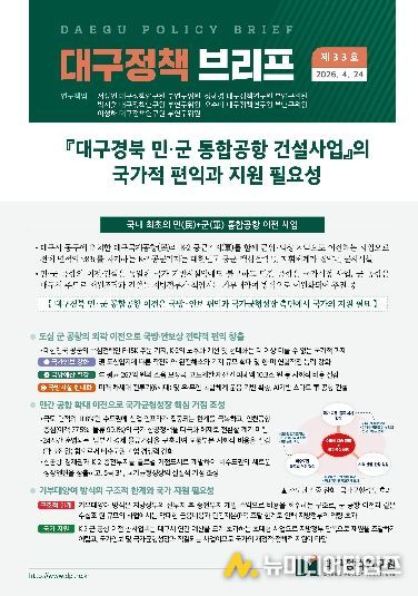 대구광역시는 대구정책연구원과 함께 ‘대구경북 민·군 통합공항 건설에 따른 국가적 편익과 지원 필요성’을 체계적으로 분석한 정책브리프를 4월 24일 발간했다.