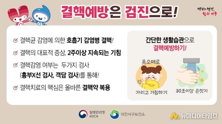 대전 서구보건소는 관내 주간보호센터 이용자 및 주민들을 대상으로 ‘찾아가는 결핵 예방 교육’을 추진한다고 24일 밝혔다.
