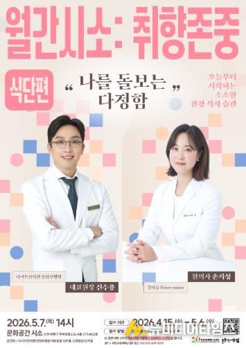 7일에는 다이트 한의원 부평점 신수용·손지성 원장이 ‘나를 돌보는 다정함, 오늘부터 시작하는 소소한 건강 식사 습관’을 주제로 강연을 진행한다.