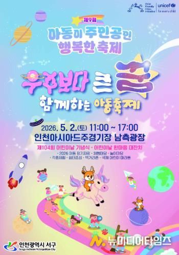 인천 서구는 제104회 어린이날을 맞이하여 오는 5월 2일 오전 11시부터 오후5시까지 인천아시아드주경기장 남측광장에서 제9회 아동이 주인공인 행복한 축제를 개최한다.