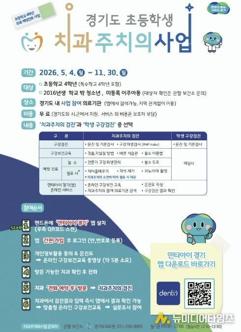 포천시보건소는 지역 내 아동의 구강건강 관리를 강화하기 위해 오는 5월 4일부터 11월 30일까지 ‘초등학생 치과주치의사업’을 추진한다.