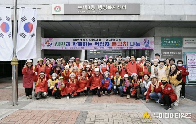 대한적십자사봉사회 구리시협의회는 지난 23일 수택3동 행정복지센터 1층 광장에서 '2026년 시민과 함께하는 적십자 봄김치 나눔’행사를 실시했다고 밝혔다.