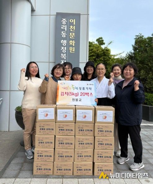 이천시 중리동행정복지센터는 원불교가 지역 내 어려운 이웃들을 위해 김치(5kg) 20박스를 기탁하며 따뜻한 나눔을 실천했다고 밝혔다. 이번 기탁은 경제적 어려움과 돌봄 공백 등으로 일상생활에 어려움을 겪고 있는 취약계층 이웃들에게 조금이나마 힘이 되고자 마련됐다.