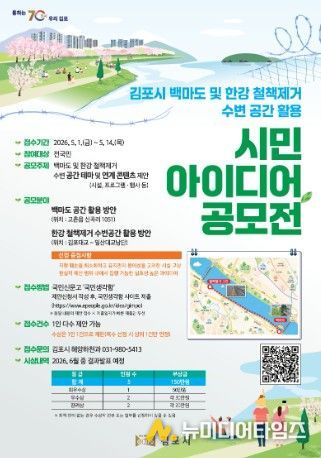 김포시가 한강 철책 제거 부지와 백마도 등 천혜의 수변 자원을 시민들의 쉼터와 문화 공간으로 탈바꿈하기 위해 ‘시민 아이디어 공모전’을 개최한다고 밝혔다. 이번 공모전은 ‘김포시 백마도 및 한강 철책 제거 수변 공간 활용’을 주제로, 시민들의 창의적이고 실효성 있는 아이디어를 발굴해 시정 운영에 적극 반영하기 위해 마련됐다.