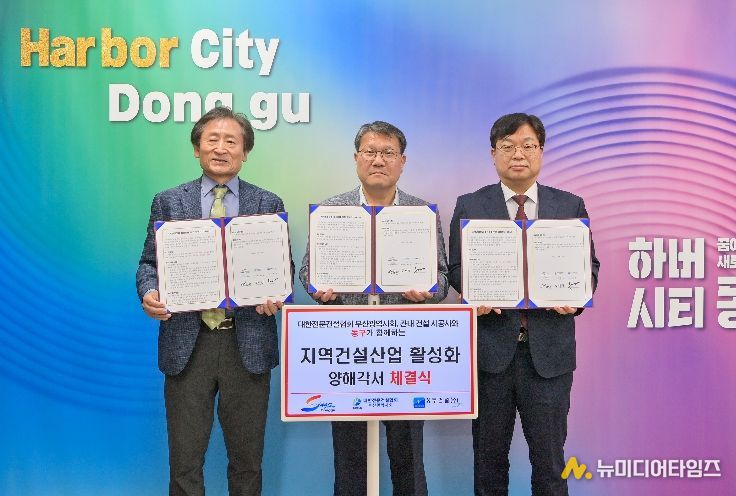 이날 협약식에는 동구 박진석 부구청장, 대한전문건설협회 부산광역시회 사무처장, 성무건설 주식회사 대표이사 등 주요 관계자가 참석했다.