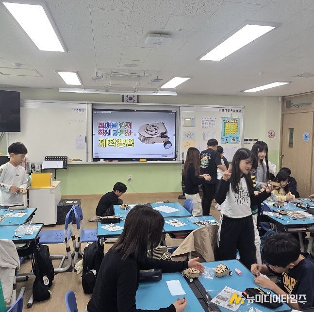 학생들은 저마다의 창작물에 집중하며 즐거운 시간을 보냈다. 직접 만든 자동차로 교실 바닥에서 경주를 펼치는 3학년 학생들의 얼굴에는 환한 미소가 번졌다. 5학년 교실에서는 ‘장애물 감시 착시 자동차’제작 방법을 진지하게 경청하며 자신만의 발명품을 완성해 나가는 열띤 분위기가 연출됐다.