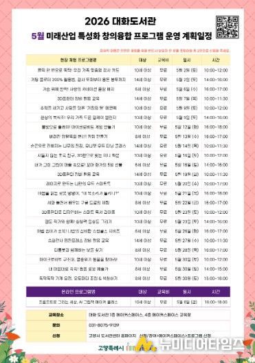 고양특례시 대화도서관은 가정의 달을 맞아 오는 5월 ‘미래산업 특성화 창의융합 프로그램’을 운영한다고 24일 밝혔다.