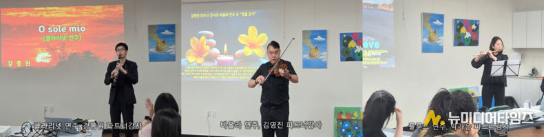 강봉원 강사의 클라리넷 연주 ‘오 솔로 미오’, 김영진 강사의 비올라 연주 ‘촛불 잔치’, 박가은 강사의 플루트 연주 ‘골든’은 참석자들에게 깊은 감동을 선사하며 뜨거운 박수갈채를 받았다.