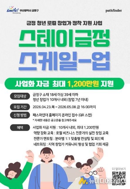 부산 금정구는 청년 창업가의 지역 기반 창업과 로컬 비즈니스 활성화를 위해 ‘2026 금정 청년 로컬 창업가 정착 지원사업(스테이 금정 Scale-up)’ 참여 기업을 모집한다.