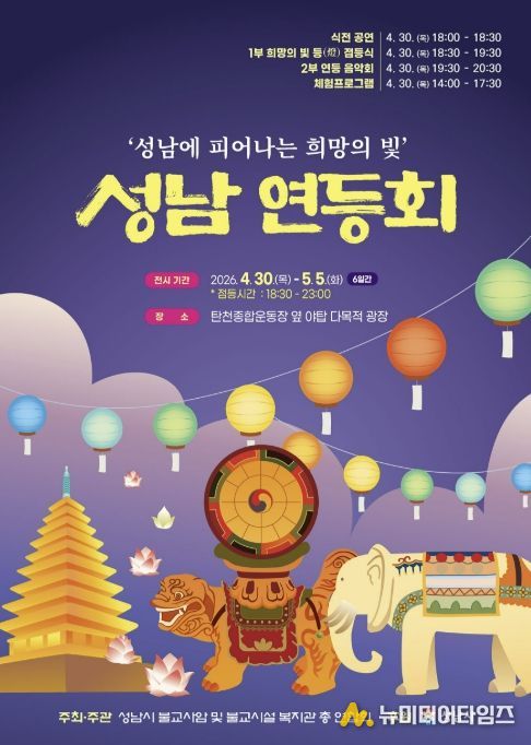 ‘2026 성남 연등회’가 오는 4월 30일부터 5월 5일까지 엿새간 분당 탄천 야탑 다목적광장(탄천종합운동장 앞)에서 열린다.