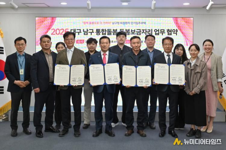 대구 남구는 지난 24일 지역사회 통합돌봄 활성화를 위한 『돌봄보금자리』 운영을 위해 LH대구북부권주거복지지사와 남구종합사회복지관 및 대명사회복지관과 업무협약을 체결했다고 밝혔다.